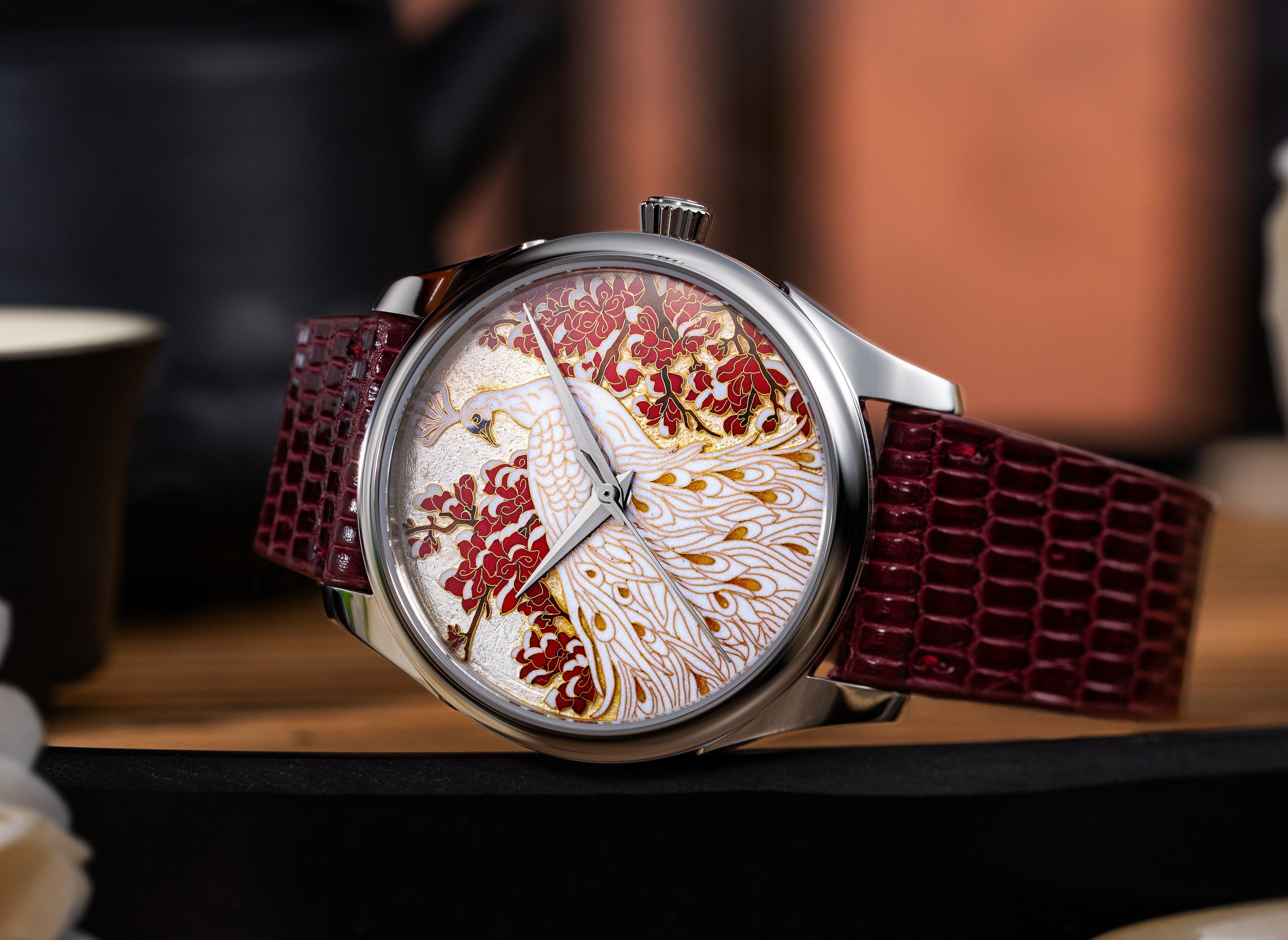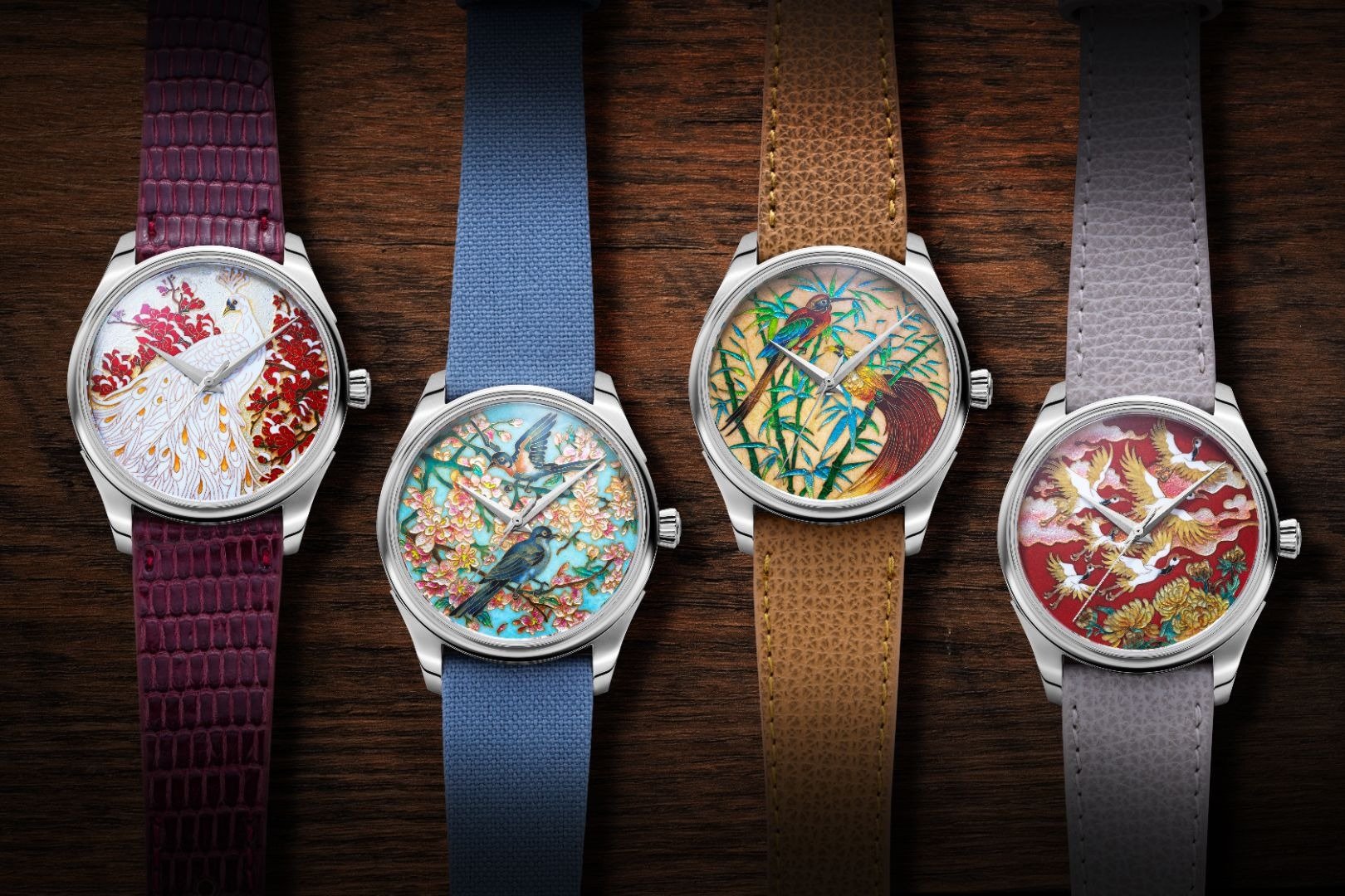 Each watch features a dial meticulously crafted in cloisonné enamel brought to life by Master Enameller Xiong Songtao of Beijing, a revered artisan whose family has served as Imperial Enamellers to the emperors of China for generations. Every dial is a triumph of patience and technique: the intricate wire-laying process alone takes over 50 hours, and throughout the multi-stage firing, the enamel is vulnerable to cracking, warping, or discolouration. Fewer than one in ten dials emerge flawlessly. Yet those that do are eternal as cloisonné enamel never fades, and each dial is a truly unique work of art. The Birds & Flowers motif gracing each piece is entirely hand-rendered, capturing the spirit of Chinese artistic tradition with breathtaking precision.