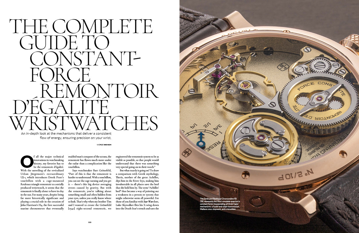 And, in a link to this story, Wei Koh provides the ultimate guide to constant-force remontoir d’égalité wristwatches.