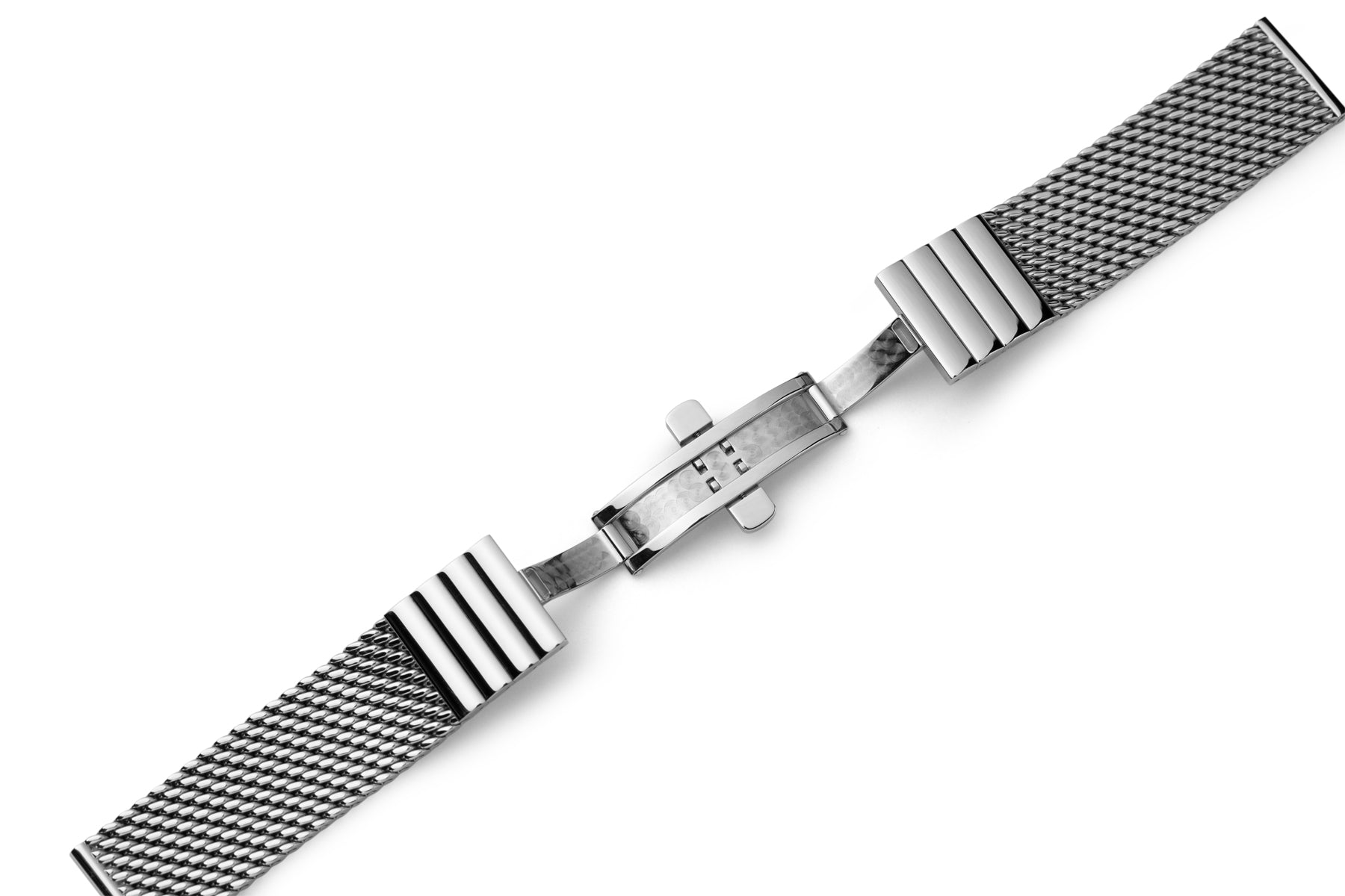 Milanese bracelet in stainless steel, 20mm, with twin trigger release deployant clasp.