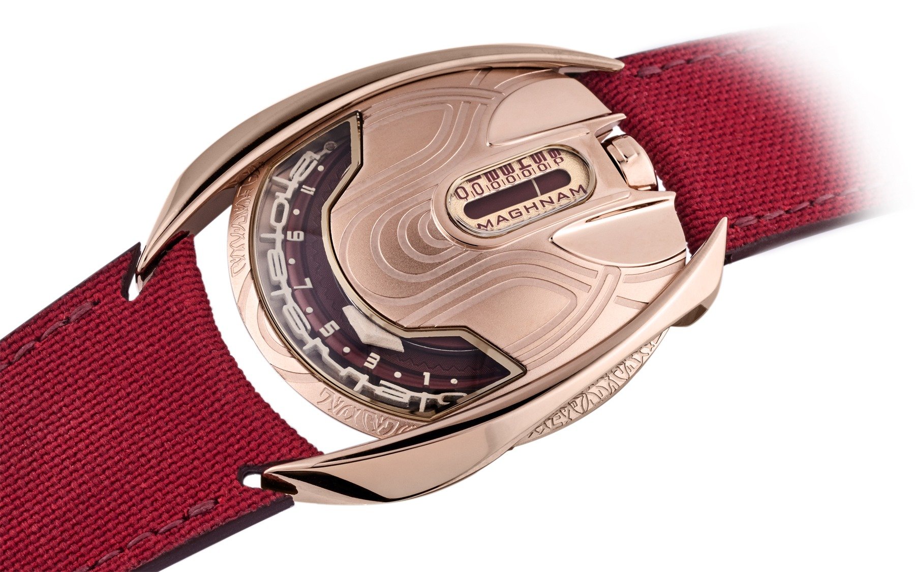 Unlike many avant-gardist, modernist watches in this category, the Mohareb is distinguished by its extraordinary refinement thanks to its extremely slim profile measuring just 8.6mm in height. In fact, the top plate measures just 0.25mm; any thinner and its structural integrity would have been compromised. This slimmess was achieved through unconventional means: Maghnam eschewed traditional manufacturers and turned to a company that CNC machines surgical tools in order to accomplish this. The result are striking proportions that retain a sense of elegance that complements the futuristic aesthetic.