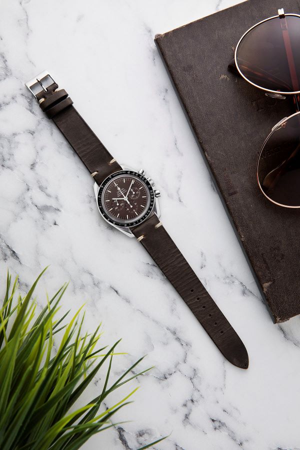 The vintaged chocolate brown strap offers a cool retro appeal to your wristwatch instantly.