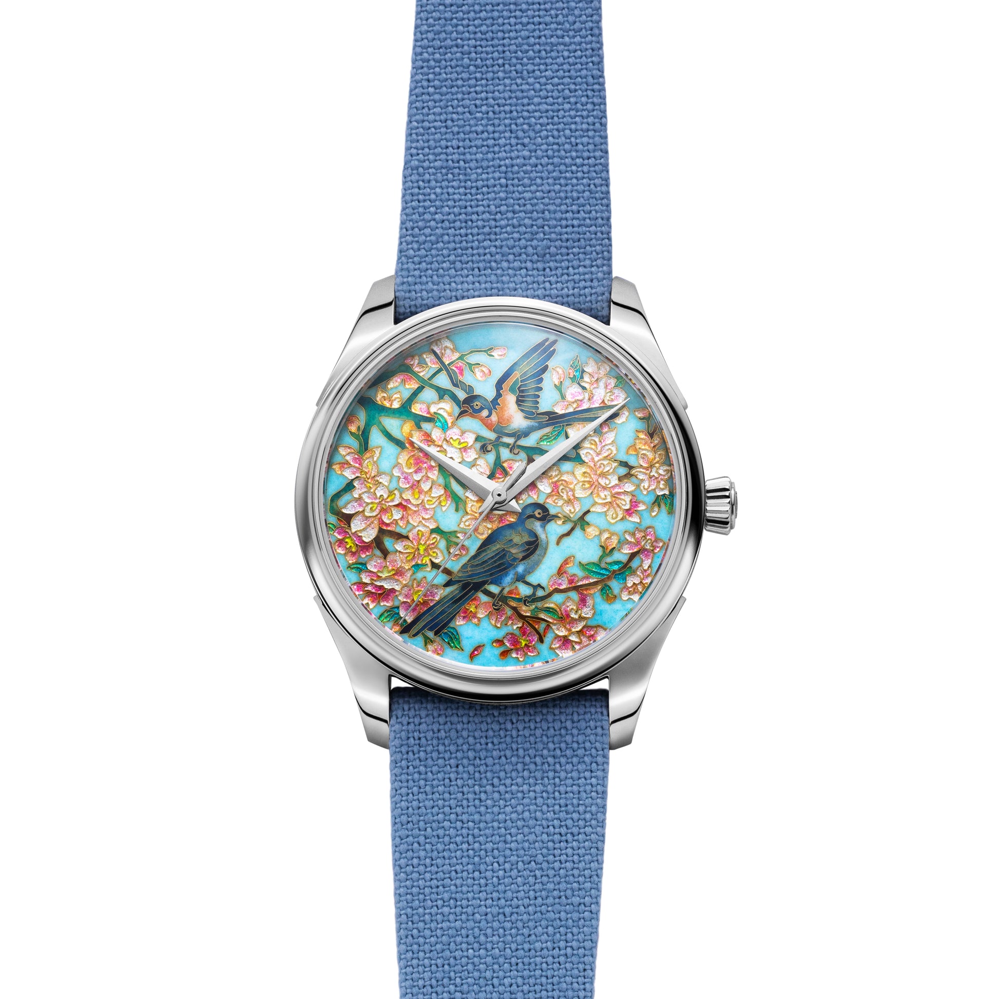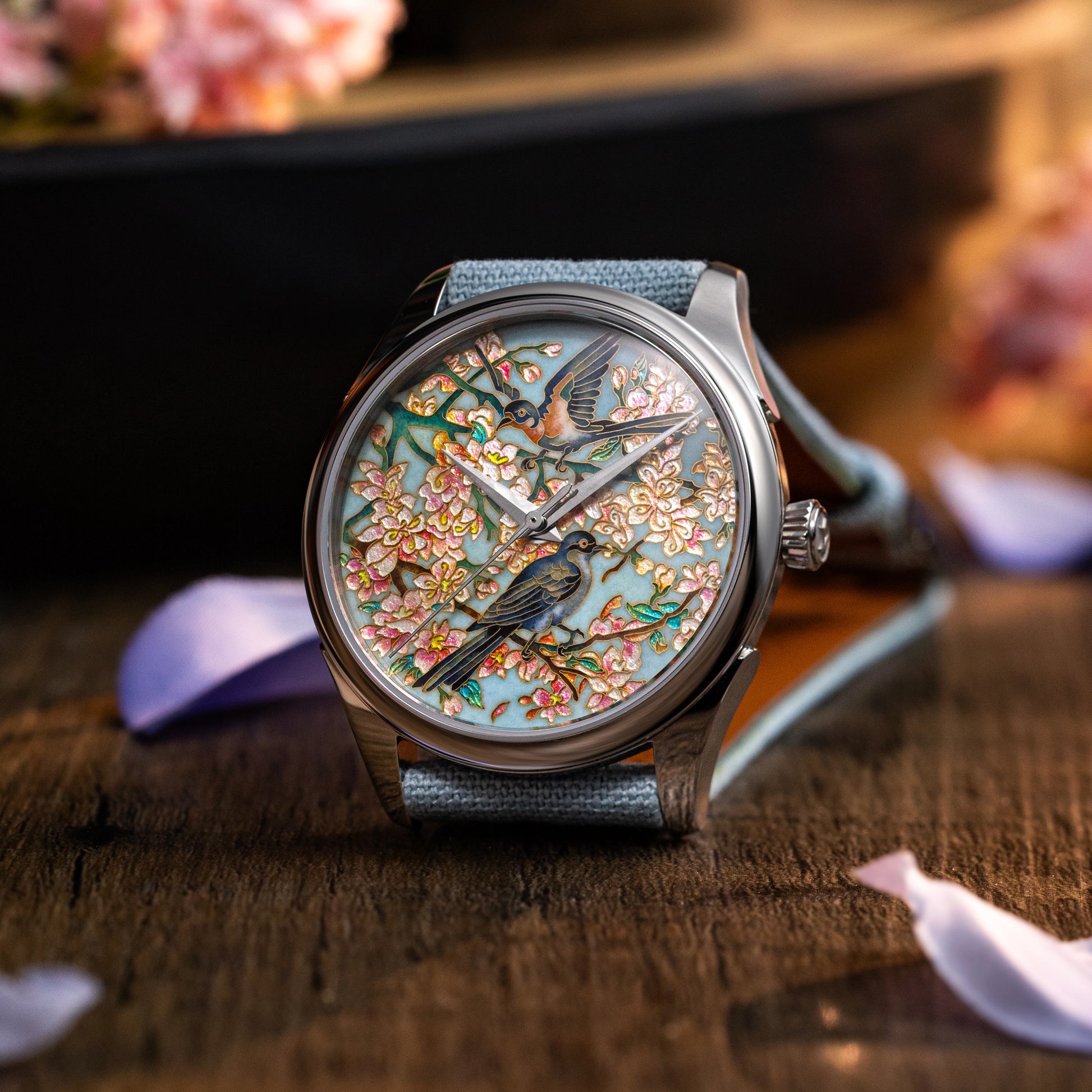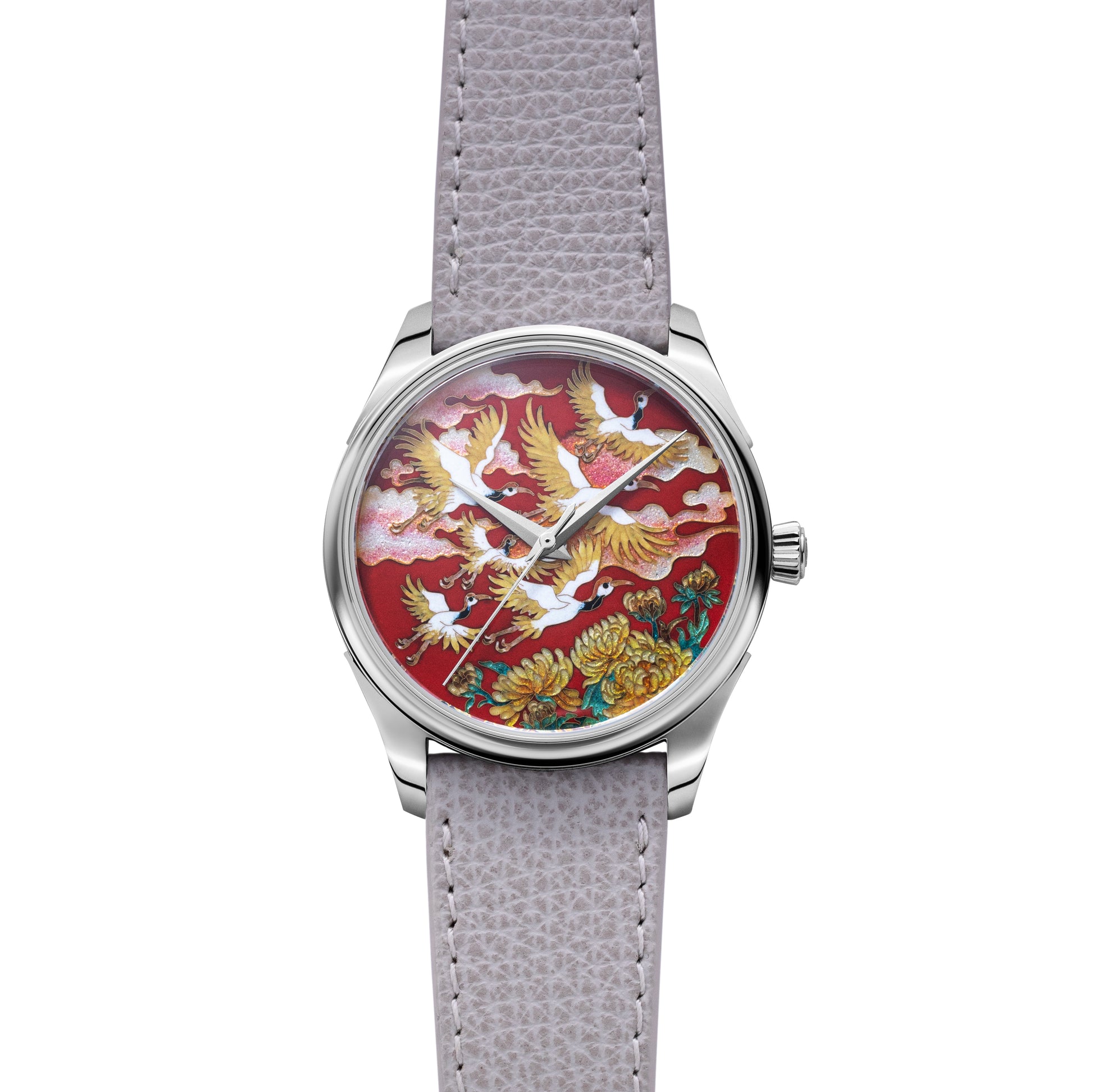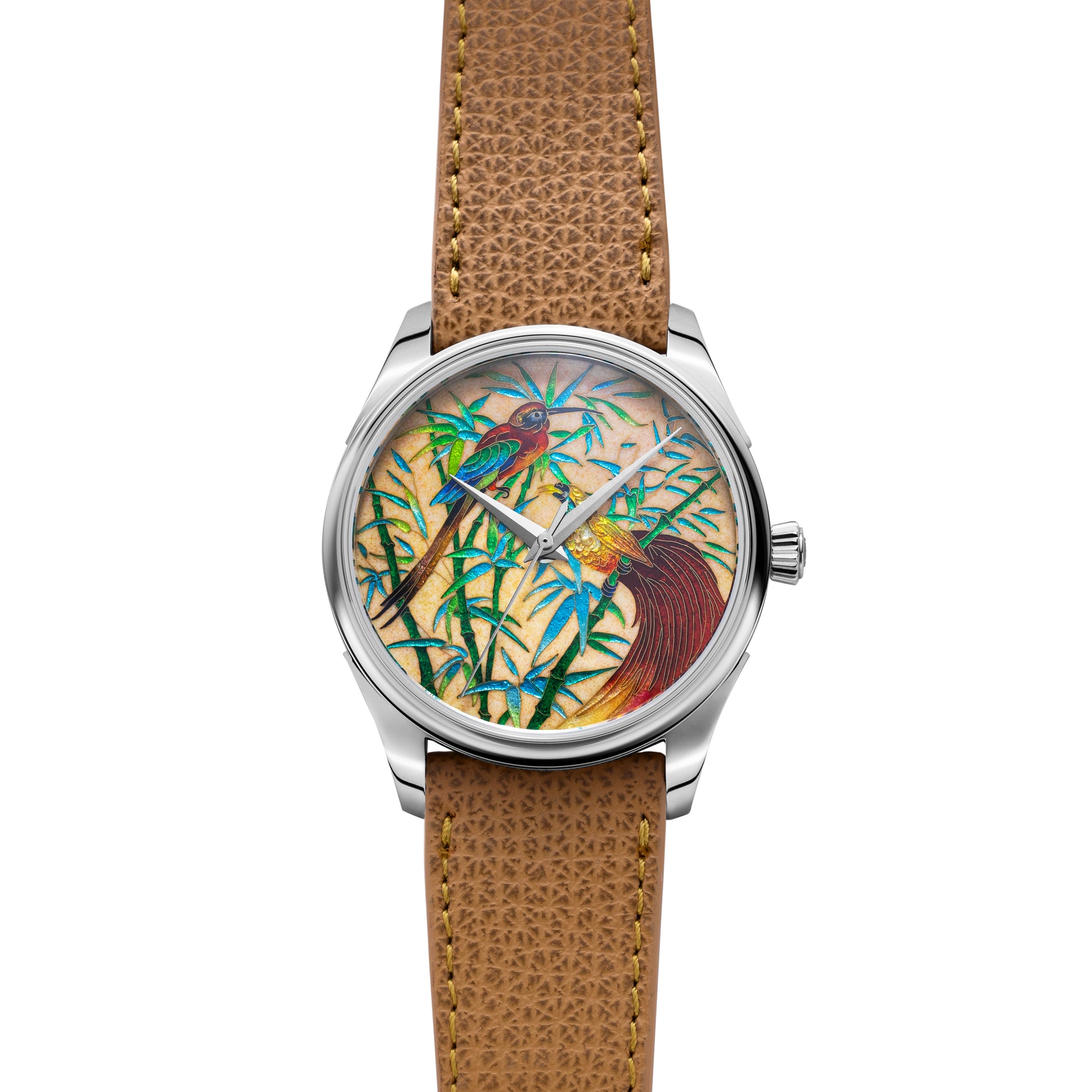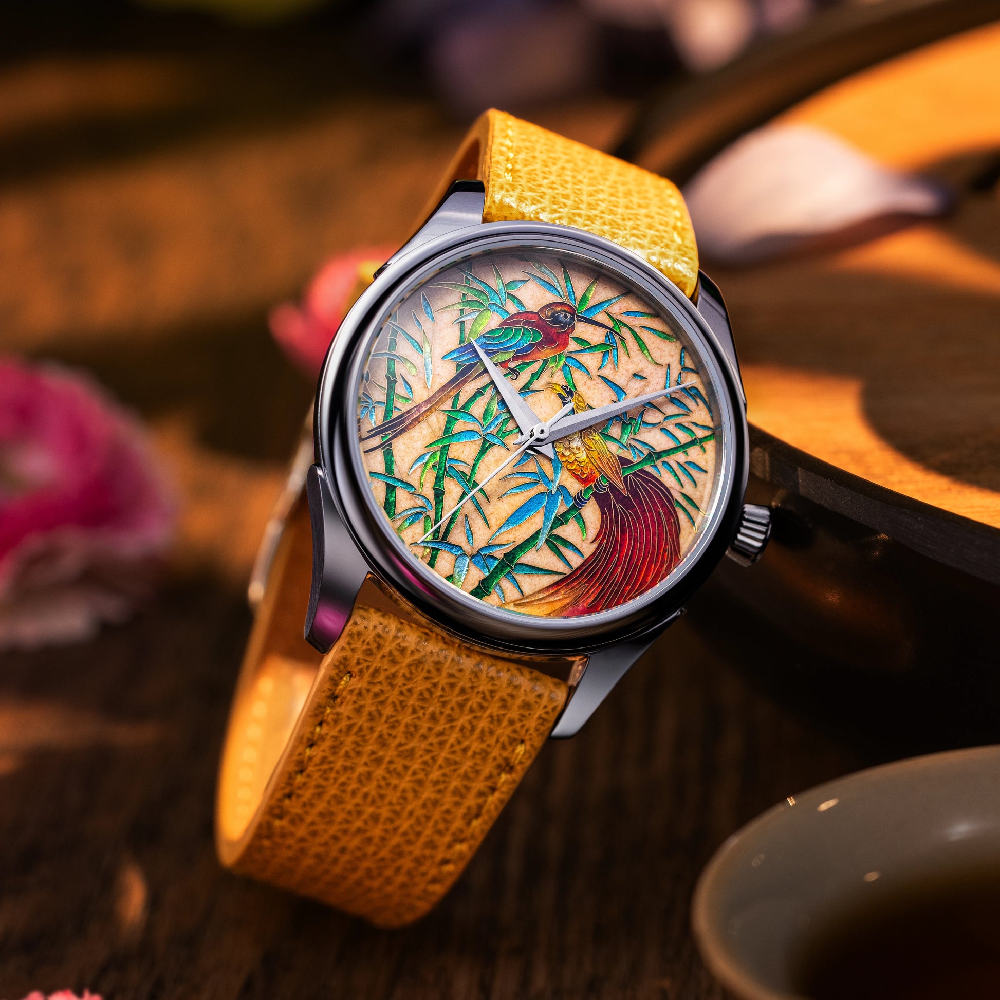 Each watch features a dial meticulously crafted in cloisonné enamel brought to life by Master Enameller Xiong Songtao of Beijing, a revered artisan whose family has served as Imperial Enamellers to the emperors of China for generations. Every dial is a triumph of patience and technique: the intricate wire-laying process alone takes over 50 hours, and throughout the multi-stage firing, the enamel is vulnerable to cracking, warping, or discolouration. Fewer than one in ten dials emerge flawlessly. Yet those that do are eternal as cloisonné enamel never fades, and each dial is a truly unique work of art. The Birds & Flowers motif gracing each piece is entirely hand-rendered, capturing the spirit of Chinese artistic tradition with breathtaking precision.
