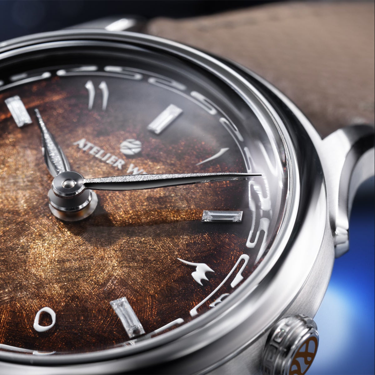 For the first time, Atelier Wen presents a piece created specifically for Dubai Watch Week—a dial crafted in translucent enamel that pays tribute to the sands of the desert and the ancient trade routes that once connected civilizations. The enamel features a magnificent fumé effect, transitioning from warm desert sand at the center to a deep, dark chocolate tone along the periphery. Adding depth and texture, the dial base is incorporated with a gratté surface, hand-scratched to create a striking interplay of light and grain. This artisanal work is executed by Master Kong Lingjun in his Beijing atelier, further underscoring the meticulous craftsmanship behind the piece. To heighten its sophistication, the dial is adorned with Eastern Hindu-Arabic numerals, alternating with baguette diamond hour markers. The result is a refined fusion of aesthetics—a bridge between Greater China and the Middle East, celebrating the shared heritage, artistry, and cultural exchange that bind these regions together.