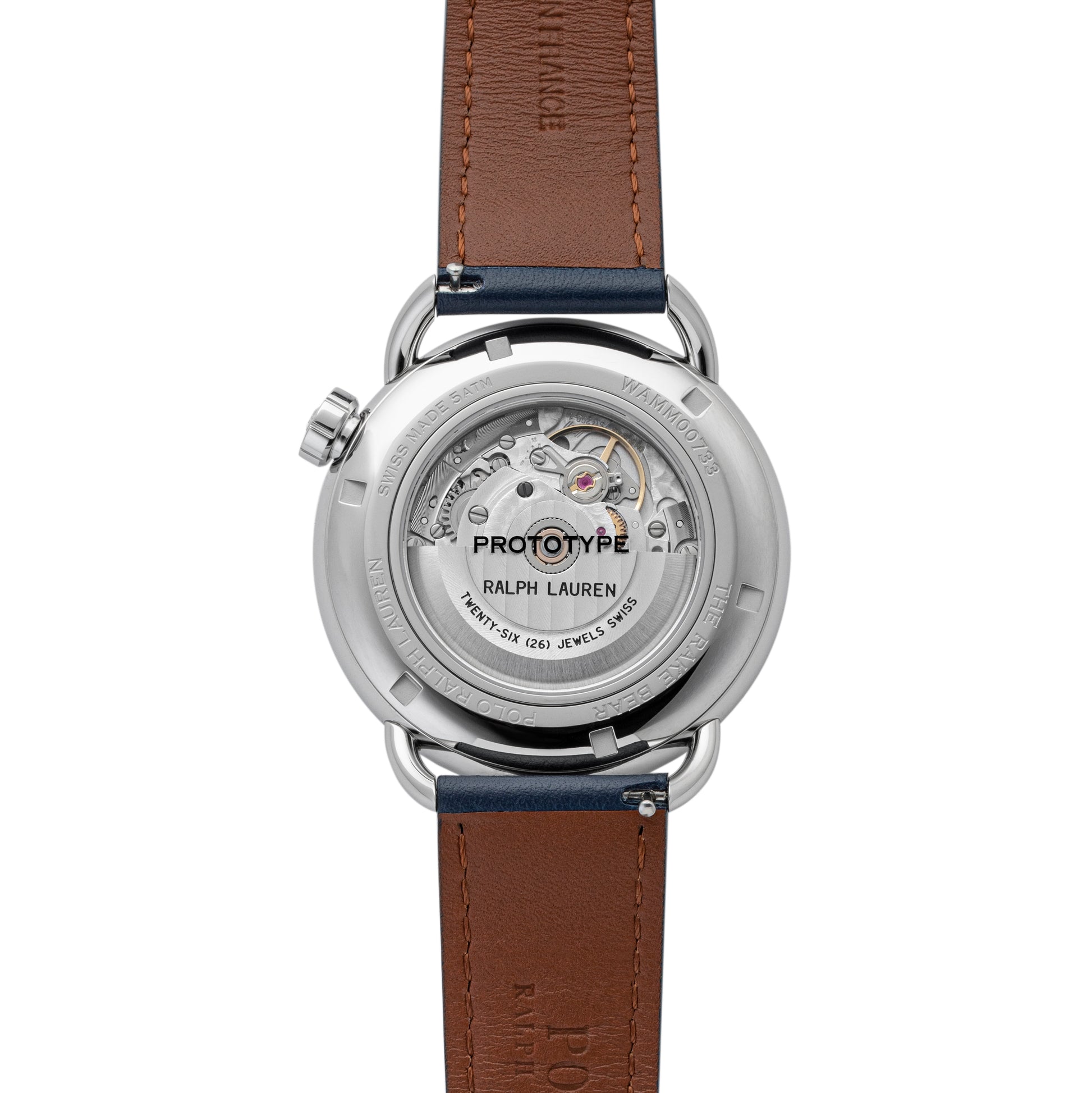 The watch features a seconds hand as well as the 5 index in distinct Negroni orange. Why the number “5”?